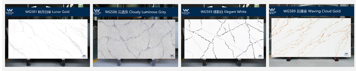 La piedra de cuarzo Weiyang es una piedra artificial compuesta por más del 90 % de polvo de arena de cuarzo de alta calidad, junto con resina, pigmentos y otros aglutinantes. Se somete a un proceso de moldeo por vibración a presión de vacío, curado y procesamiento para lograr una dureza, resistencia al desgaste y a las manchas superiores. Es un material de construcción ecológico, reutilizable, no radiactivo y respetuoso con el medio ambiente.