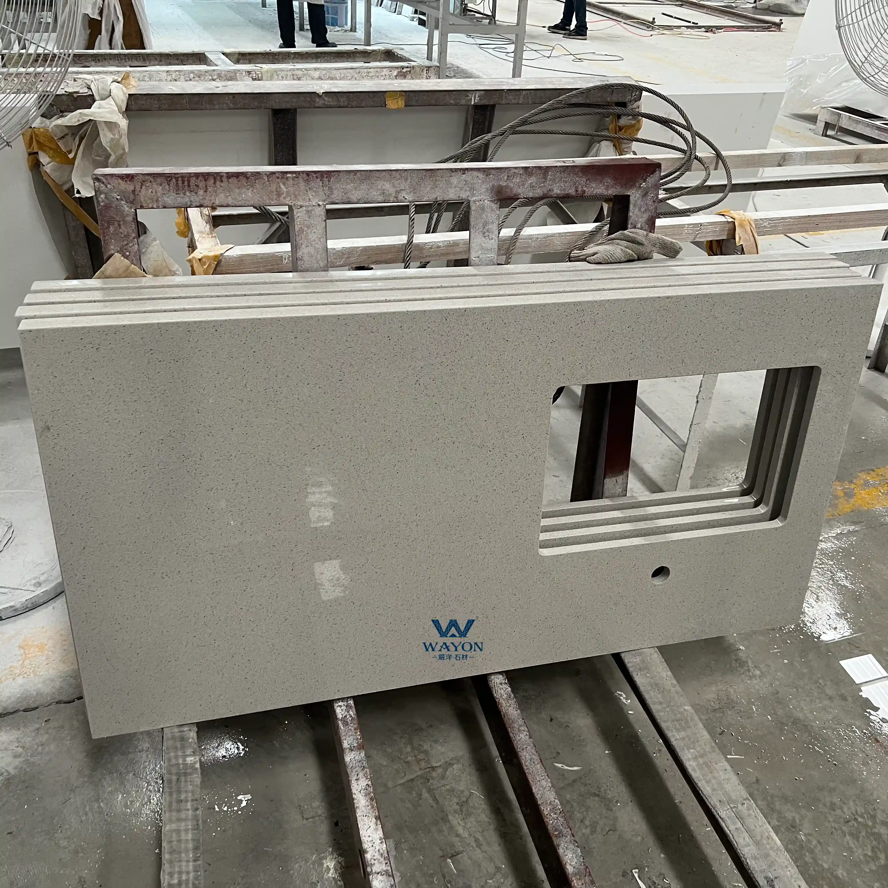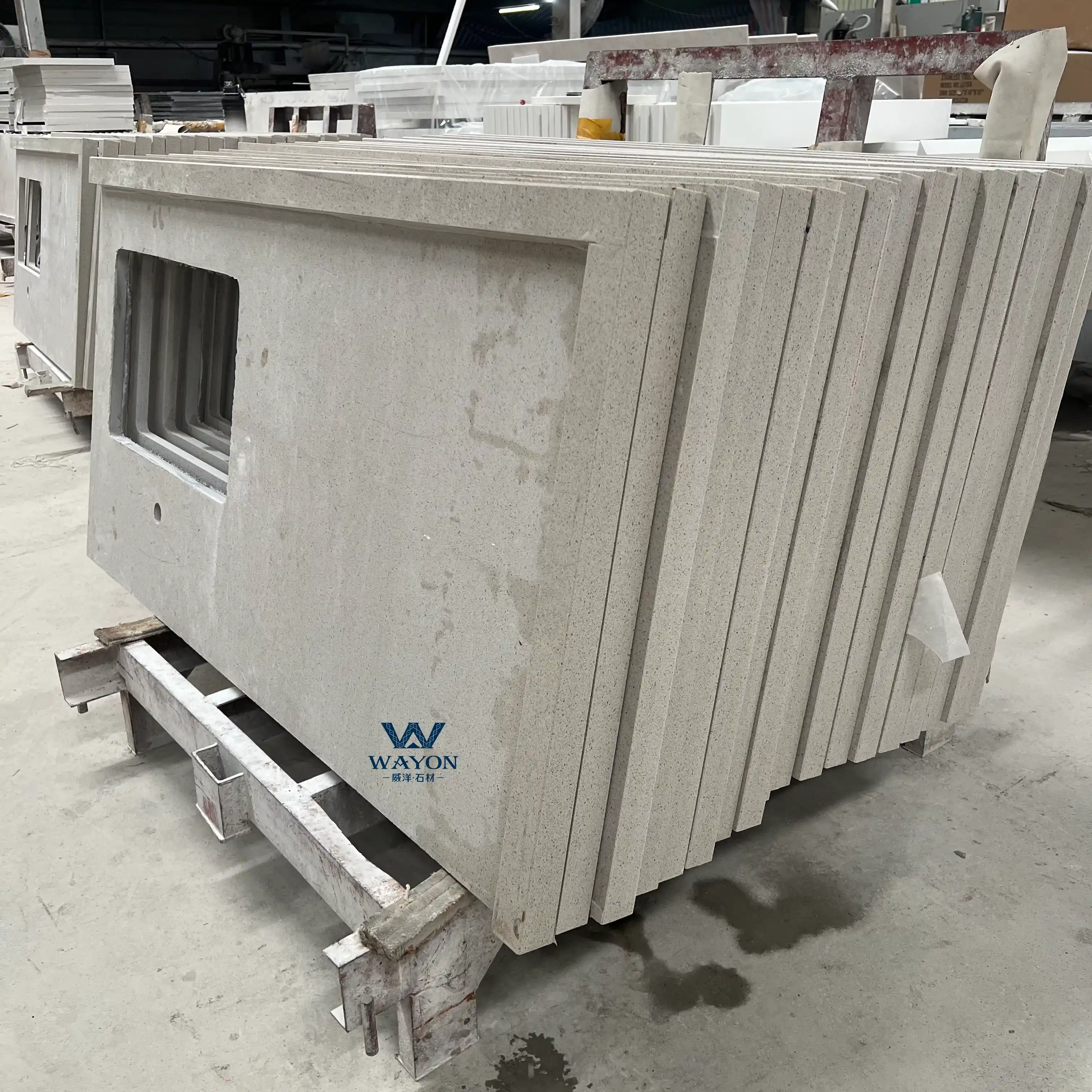 Wayon Stone se especializa en el procesamiento de varios tipos de encimeras de tocador de baño, como cortar orificios para lavabos debajo o encima de la mesa, grifos, colgantes de 2 a 20 cm, salpicaderos, lavabos de piedra de una pieza, lavabos de columna, lavabos sin bordes y diseños personalizados que podrían ser perfectamente completado.